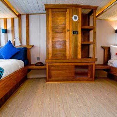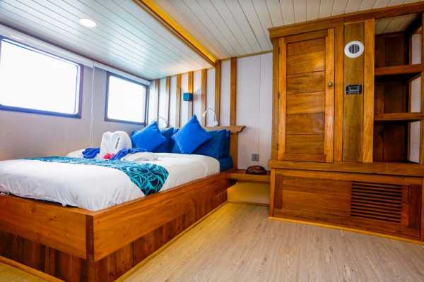 Из этой просторной каюты, расположенной на верхней палубе судна, открывается потрясающий вид, а также есть ванная комната, кондиционер и достаточно места для хранения вещей.