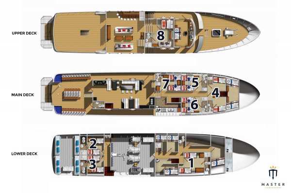Solomons Master со стальным корпусом (ранее Truk Master) располагает восемью двухместными каютами, в которых могут с комфортом разместиться до 16 гостей, а также классическими каютами, каютами премиум-класса или улучшенной планировки.
