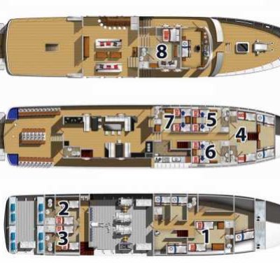 Эта каюта расположена на главной палубе судна.
