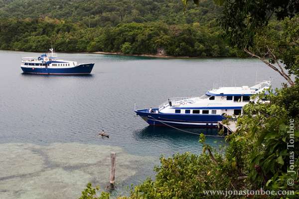 Дайв-палуба на Spirit of Niugini специально продумана, чтобы обеспечить просторное место для хранения костюмов и переодевания, а так же предусмотрены индивидуальные места для снаряжения. Две одинаковые лестницы, которые ведут вниз к платформе для погружений очень удобные.