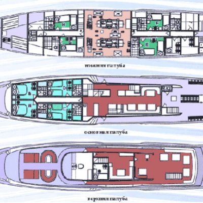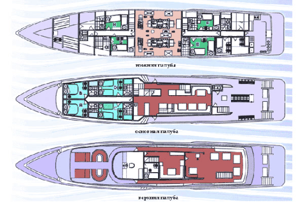 гости размещаются в 8 просторных двухместных каютах Deluxe на средней и нижней палубах.