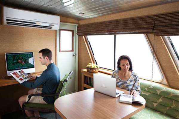- Дайвинг палуба с индивидуальными ящиками для оборудования, баком с пресной водой, столом для фототехники с подведёнными шлангами со сжатым воздухом.