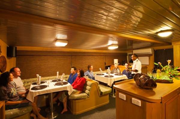 Команда из 8 человек будет обеспечивать лучший сервис, начиная с утреннего кофе в салоне и заканчивая помощью на дайв-платформе, когда Вам подсобят взобраться на борт да еще и укутают теплым полотенцем после ночного дайва!