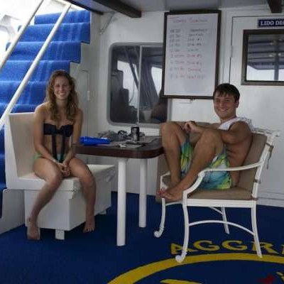 На дайв-деке есть фонтанчик для питья, установка для устранения запотевания масок, зона для грузопоясов, два душа и набор свежих полотенец. Здесь же находятся специальные промывочные ванны для Вашего оборудования. Информация касательно дайвинга представлена на большой доске, где указаны глубина погружения и приведен список морских обитателей которых можно встретить на дайв-сайте. Для удобства и безопасности на судне установлена специальная планка, исполняющая функции своеобразного глубиномера – во время дайвинга она будет находиться на уровне 5 метров под водой. Особый интерес для подводных фотографов представляет большой многоярусный стол с ковриком и полным набором чистящих материалов. Гости могут брать в аренду фото- и видео оборудование, при этом Вам предлагается гибкая система проката – Вы можете оплачивать оборудование за день или неделю использования. На борту есть профессиональный фотограф, который с радостью поможет Вам с аппаратурой и обработкой фото, по заказу он также может снять видео Вашего дайвинг-круиза.
