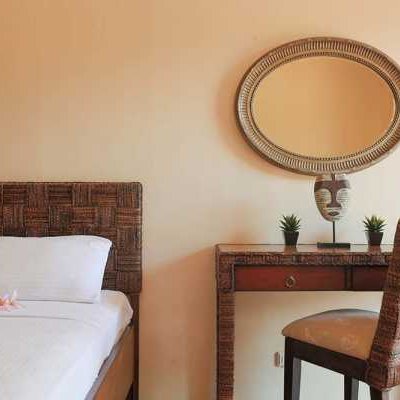 Номера делюкс с видом на сад находятся в двухкомнатных одноэтажных виллах и расположены в ландшафтном тропическом саду. Номера делюкс оснащены кроватью с балдахином или двумя односпальными кроватями. В каждом номере есть собственная крытая терраса, где можно подышать ароматным воздухом и послушать сверчков.
