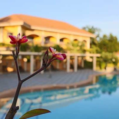 Номера делюкс с видом на бассейн расположены в двухэтажном здании с видом на 19-метровый бассейн и ландшафтный сад. Номера делюкс оборудованы одной кроватью размера "queen-size" (в одном номере две односпальные кровати). В каждом номере есть собственный балкон, где можно посидеть в тени и насладиться видом.
