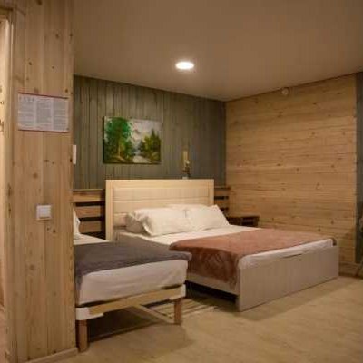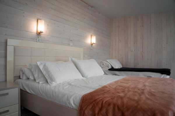 Новые номера «Супериор» выполнены в современном эко-стиле, с использованием экологичных материалов, с одной двухспальной кроватью или двумя односпальными, с возможностью установки полноценной дополнительной третьей кровати, при размещении