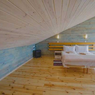 Элементы мебели и декора насыщенных, богатых оттенков в сочетании с натуральной деревянной отделкой расставляют акценты в светлом элегантном интерьере номера. Дизайнерские детали и текстиль придают обстановке индивидуальность. Продуманный до мельчайших деталей, интерьер подарит ощущения уюта и комфорта, а просторная спальня-гостиная с большими панорамными окнами и общая терраса откроют невероятные виды на озеро Байкал и бескрайние горы.