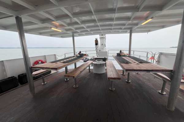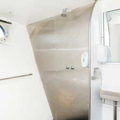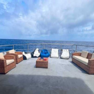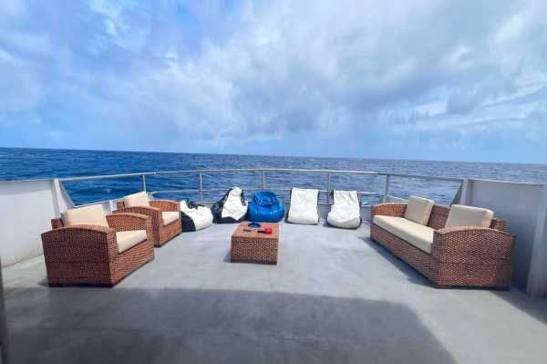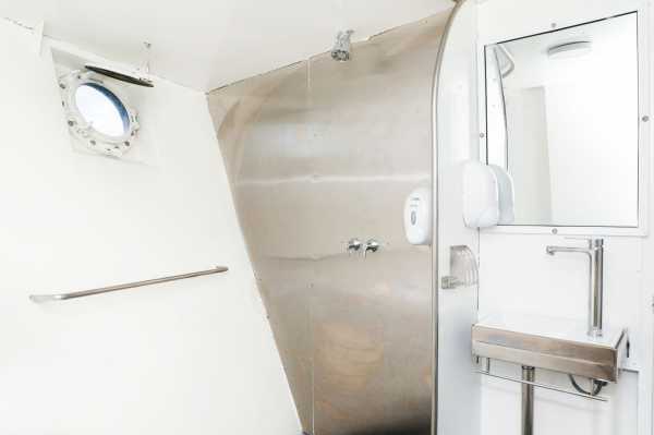 - просторный дайв-дек со стойками для баллонов, зарядными станциями, душем с горячей водой