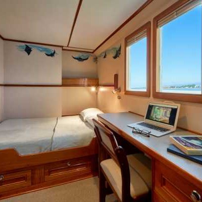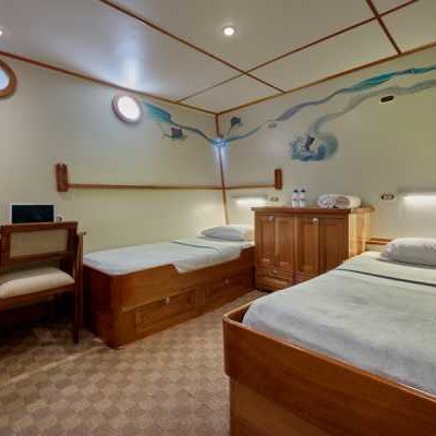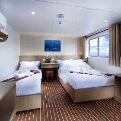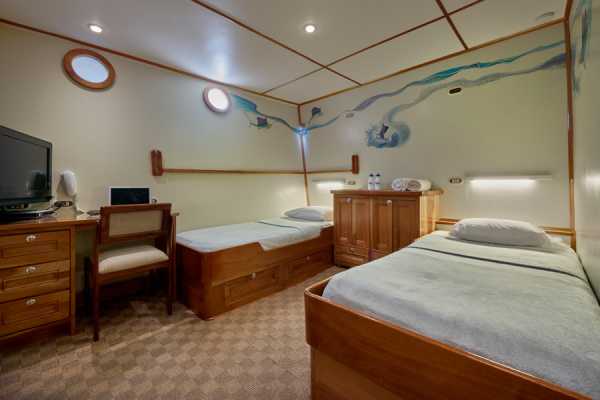 - 1 каюта Twin с двумя раздельными кроватями на одном уровне.