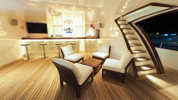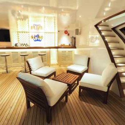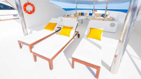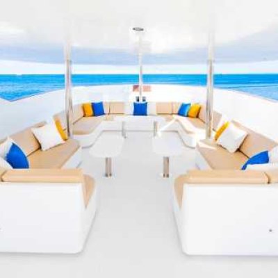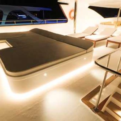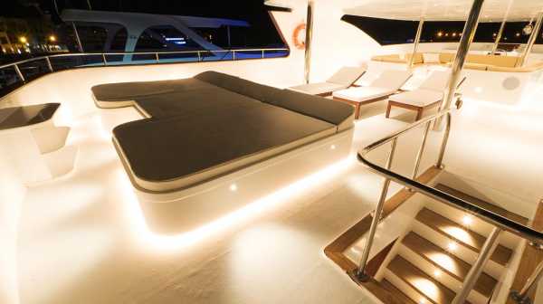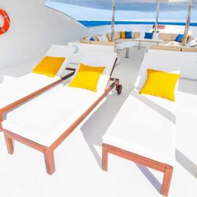 Общие помещения: 2 просторных сан-дека в носовой и кормовой части с шезлонгами, дайв-дек, бар, лаунж, салон.