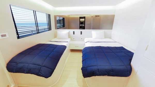 Главная палуба : 2 двухместные каюты с двумя односпальными кроватями с закрытым окном. (7 и 8)