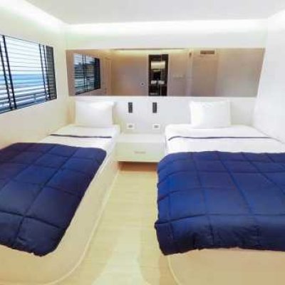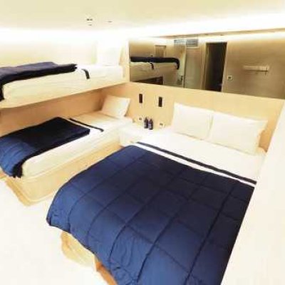 Верхняя палуба : 4 двухместные каюты с видом на море с одной двуспальной кроватью и одной односпальной кроватью (от 9 до 12).