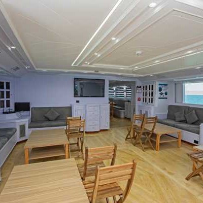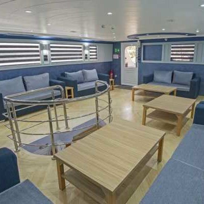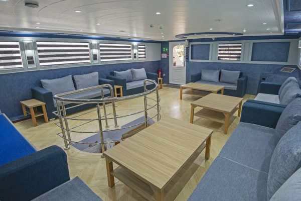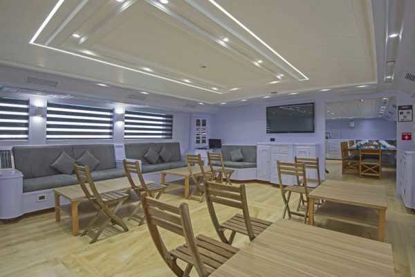 – просторный кондиционированный салон с диванами и столами