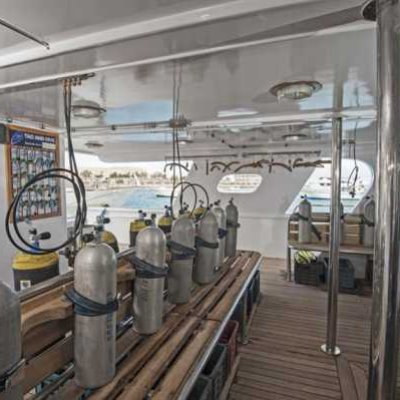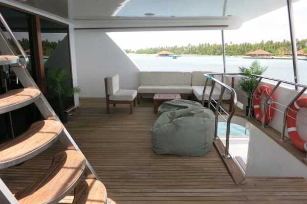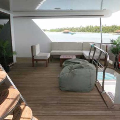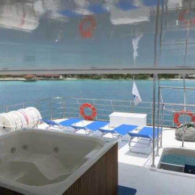 Для отдыха на борту яхты есть просторный салон и столовая, Sky Lounge и бар, открытая терраса и джакузи. Отовсюду открываются потрясающие виды на атоллы Мальдив, что создает ощущение изысканного отдыха на борту!