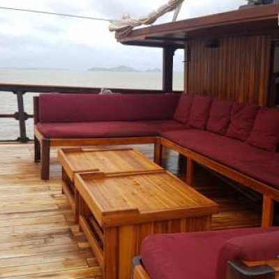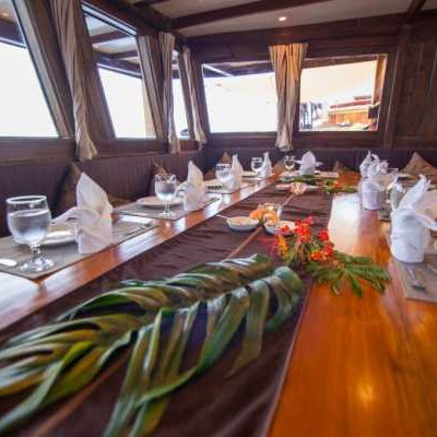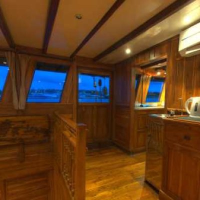 Корпус Damai I состоит из трех просторных палуб, изящный интерьер всех индивидуальных и общих помещений отделан тиком. Кондиционированная кают-компания расположена на главной палубе и условно подразделена на ресторан с большим обеденным столом и салон отдыха с диванами, кофейным столиком и развлекательной аудио/видеосистемой.