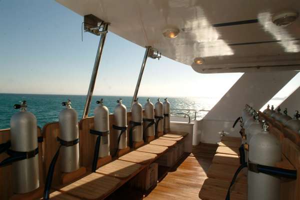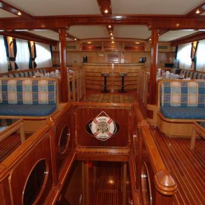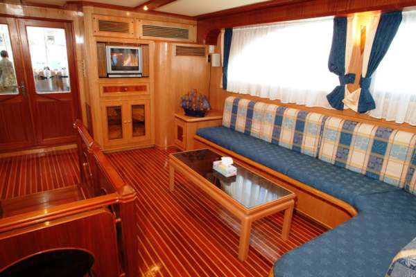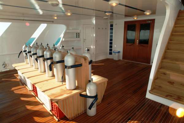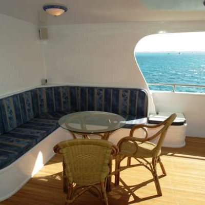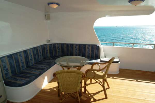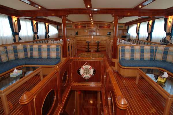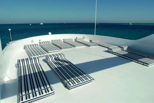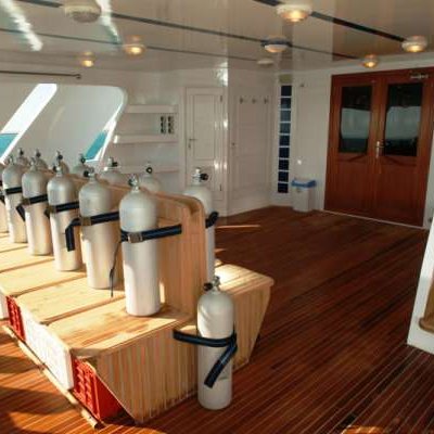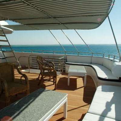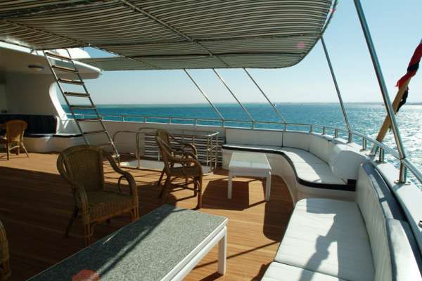 На борту имеется обеденная зона и отдельный салон с баром и TV/DVD/стереосистемой. Просторная внешняя зона включает в себя два сандека и полностью оборудованный всем необходимым дайв-дек, что позволит Вам провести незабываемое дайв-приключение в завораживающих суданских водах.