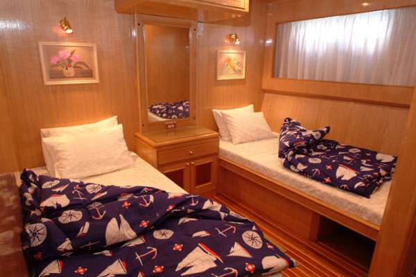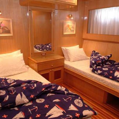 8 кают Twin c двумя односпальными кроватями на одном уровне (6 на нижней и 2 на главной палубе)