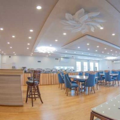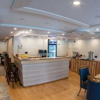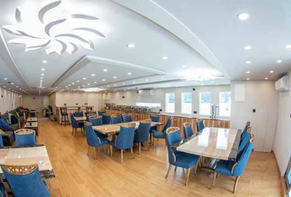 В кондиционированном салоне удобные диванчики и столы для отдыха или просмотра телевизора DVD, есть библиотека с настольными играми..