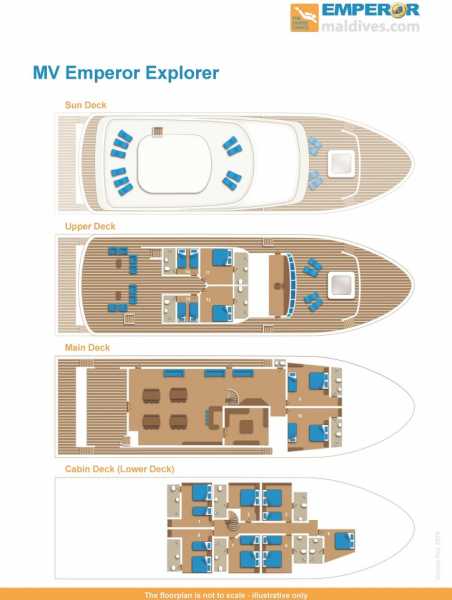 Верхняя палуба может похвастаться открытой открытой площадкой, идеально подходящей для просмотра фотографий и видеозаписей с вашего погружения или просто отдыха, наблюдения за звездами и погружения в прекрасную мальдивскую атмосферу.