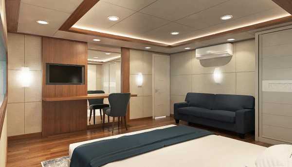 На яхте есть 8 кают TWIN и 4 каюты Suite с видом на океан.