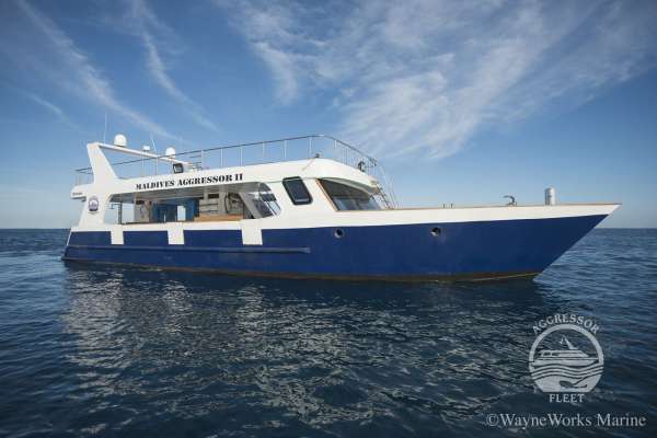 Maldives Aggressor II современная, просторная и стильная яхта, которая соответствует всем требованиям комфорта и безопасности, как доказательство имеется сертификат СОЛАС. Моторы на судне дизельные, яхта развивает скорость до 12 узлов. Вы будете приятно удивлены красотой салона, уютом солнечной палубы с шезлонгами, ассортиментом бара и возможностями фото-центра.