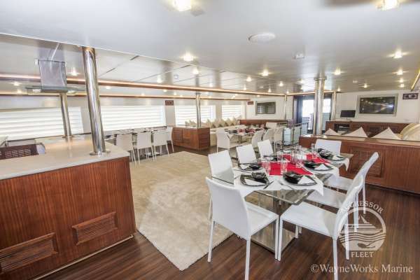 Кондиционирование: центральное — каюты/салон (с автономной регулировкой в каютах) и салон/обеденный зал