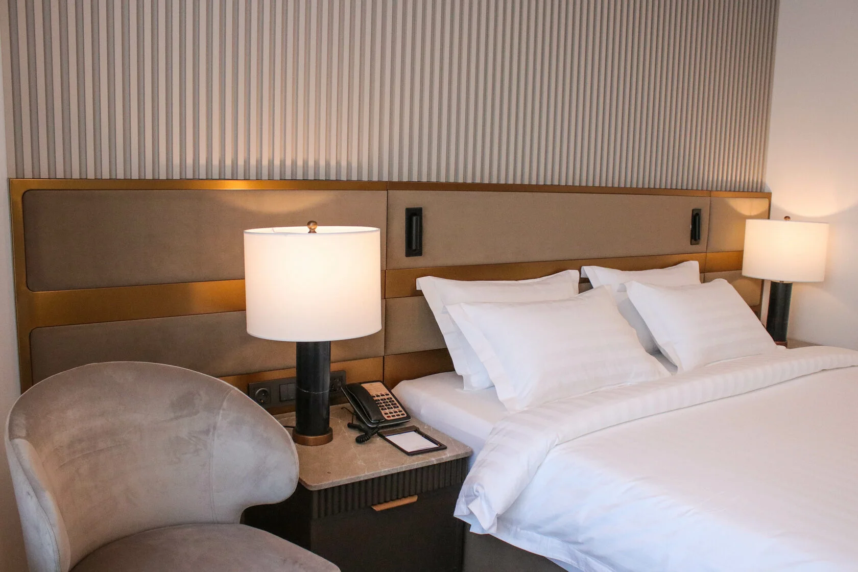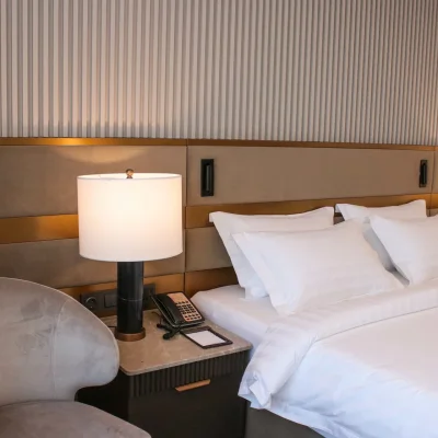 В распоряжении гостей более ста комфортабельных номеров - просторные дизайнерские пространства, оформленные в светлых тонах, в лучших традициях европейского гостеприимства - от стандартных категорий до президентских апартаментов. Исключительной особенностью является панорамный вид на горы и город. Spa-комплекс и фитнес-центр позволят с комфортом провести время после тяжелого дня.