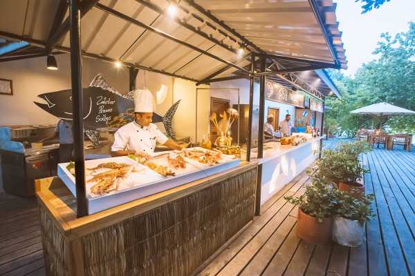 К услугам гостей роскошные блюда мальдивской и интернациональной кухни и элегантное обслуживание.