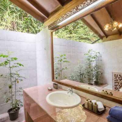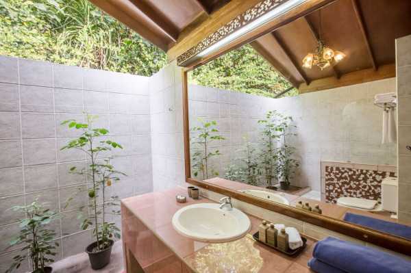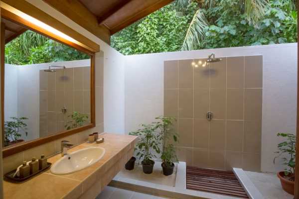 В каждой спальне установлена кровать размера "king-size", а в каждой ванной комнате есть ванна, тропический душ под открытым небом и отдельный туалет.