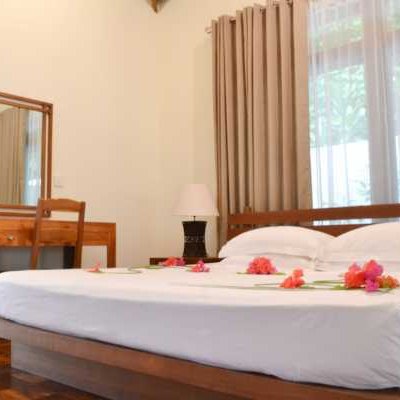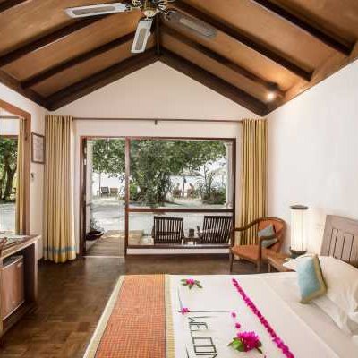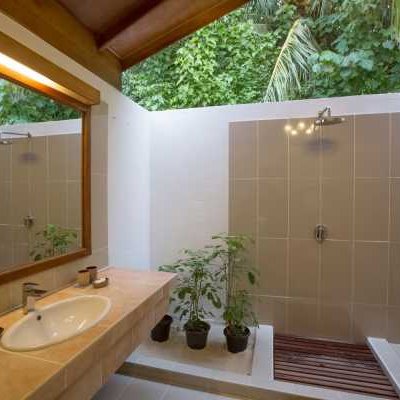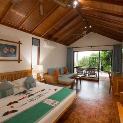 В отеле есть 50 отдельно стоящих вилл класса люкс на песчаном пляже с захватывающим видом на кристально чистую лагуну. В каждом номере есть частично открытая ванная комната с ванной и тропическим душем под открытым небом, халаты, хорошо меблированная гостиная зона, терраса и шезлонги, а также мальдивские качели.
