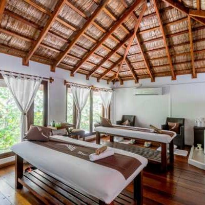 Спа-услуги включают процедурные кабинеты для пар и одиночек с кондиционером; вентилируемые соломенные хижины на пляже; джакузи и паровую баню, а также зону маникюра и педикюра, а также спа-бутик, где продается широкий ассортимент спа-продуктов.