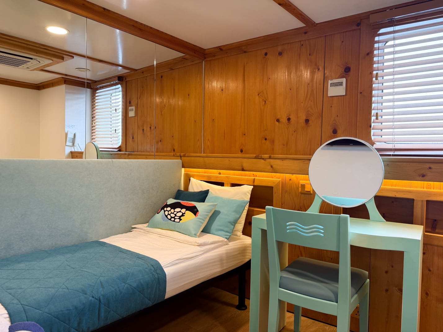 Deluxe Twin 2 beds (connected) номера №11 - №14 – каюты, площадью 9 м² с двумя односпальными раздельными кроватями, идеально подходят для размещения друзей или детей.