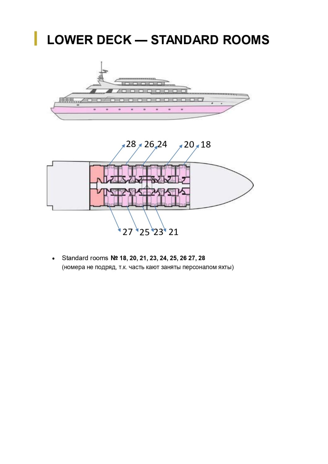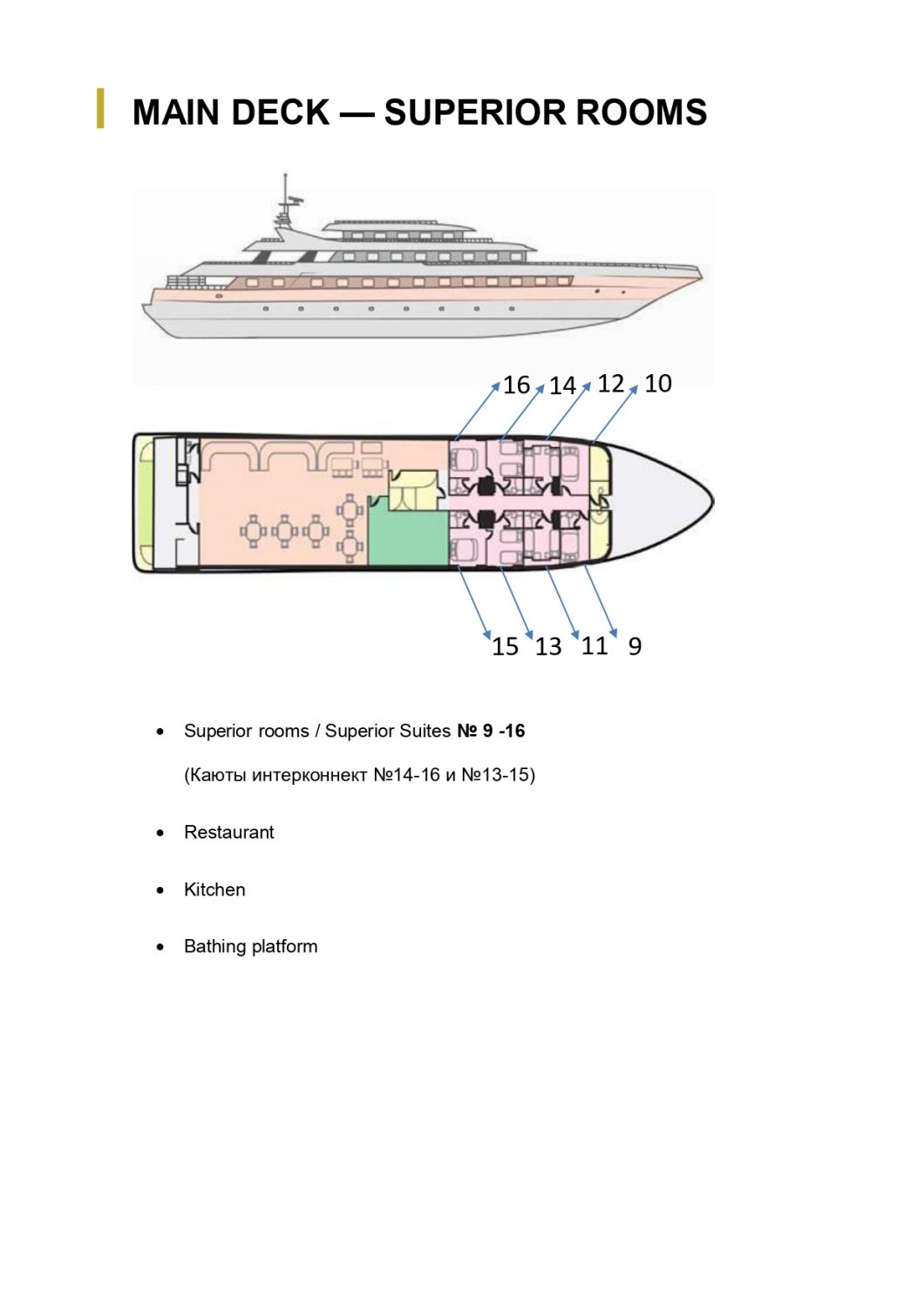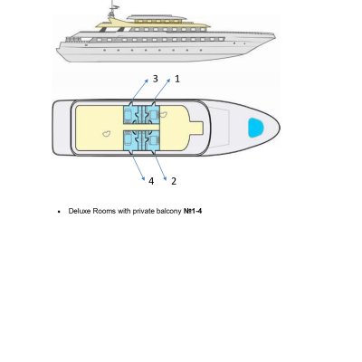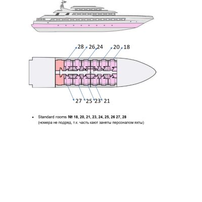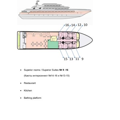 Каюты №13 и №14 могут соединяться с каютами Deluxe Queen bed общей дверью.
