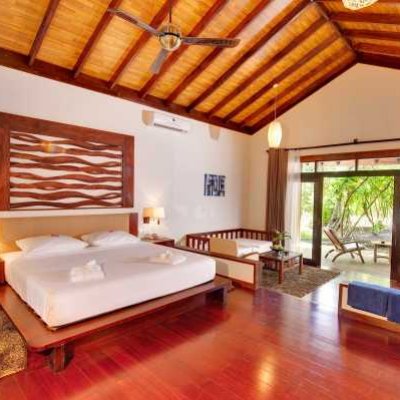 Гостям предлагаются виллы и бунгало с видом на океан, пляж или сад или в Президентский люкс площадью 240 м2.