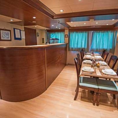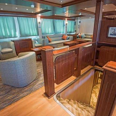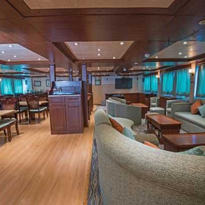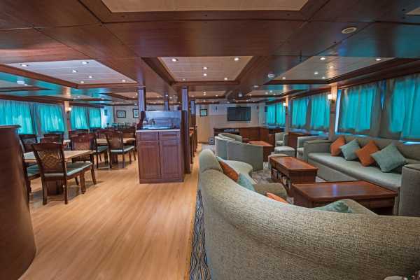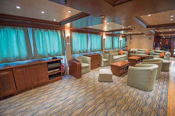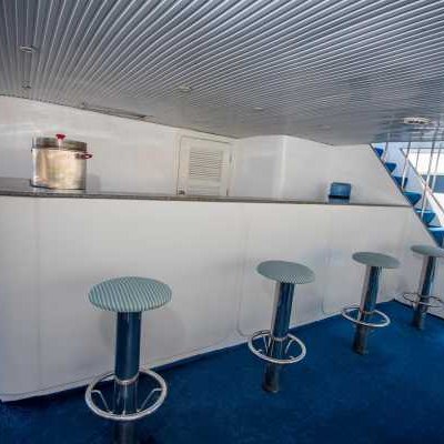 – кондиционированный салон с баром, диванами и столиками для напитков