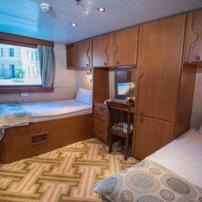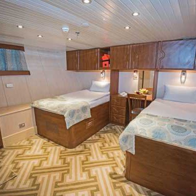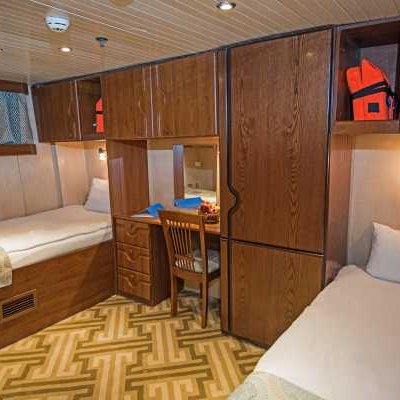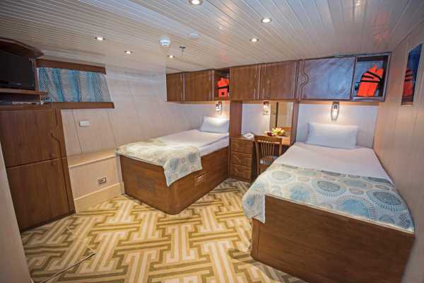– 2 двухместные каюты с раздельными кроватями на одном уровне