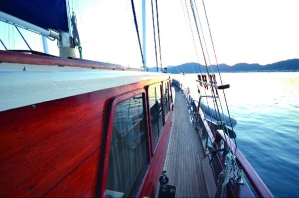 Корабль имеет широкую палубу впереди , а также удобную и просторную веранду на корме со столиками, диванами и подушками.