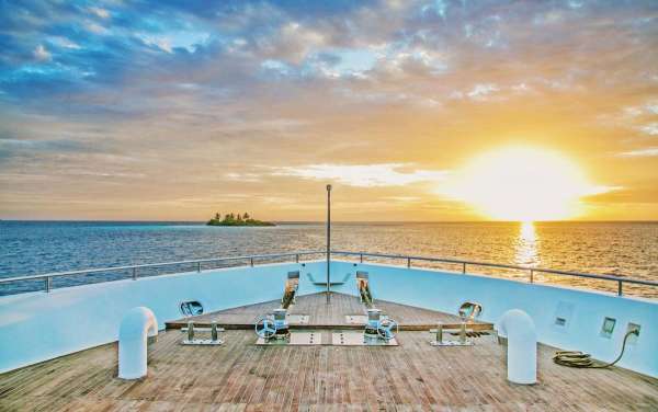 Зона отдыха на верхней палубе оборудована небольшим навесом с легкими белыми занавесями. Это место может использоваться как для отдыха, так и для SPA или приватных ужинов. Если вы захотите остаться наедине, вам нужно просто сказать об этом персоналу, и вас не побеспокоят другие гости яхты.
