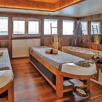 Основная изюминка обеих яхт SCUBASPA заключается в том, что особое внимание уделяется не только дайверам, но и их неныряющим половинам — на яхтах функционирует полностью оснащённый SPA-комплекс, который расположен на двух палубах и занимает почти 300 квадратных метров! Поэтому, пока Вы любуетесь подводным миром, Вы можете быть полностью уверены в том, что Ваши спутницы не заскучают на борту!