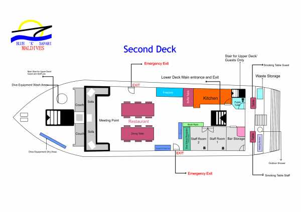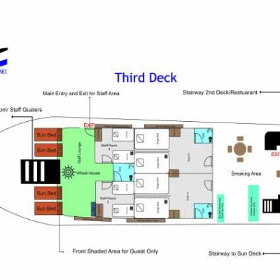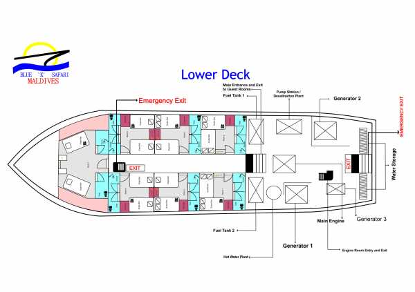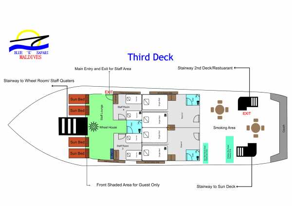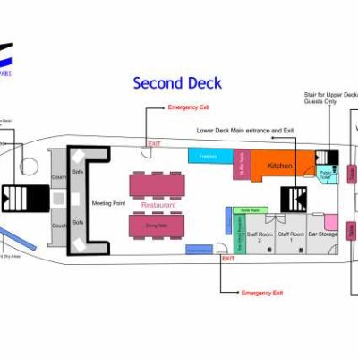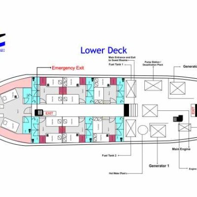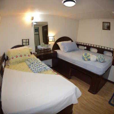 18 гостей размещаются в 9 двухместных каютах. Во всех каютах есть кондиционер, душ и туалет.