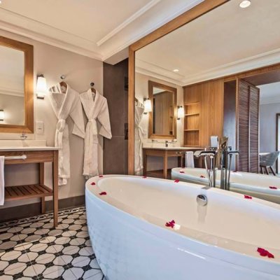 Этот просторный люкс на первом этаже создан для двоих. Прямой выход на пляж - достаточно сделать несколько шагов, и вы уже на белоснежном песке. Внутри - кровать размера «кинг-сайз» для безмятежного сна, отдельная зона отдыха для уединения и собственная гардеробная для ваших вещей.