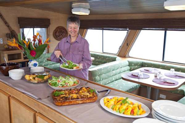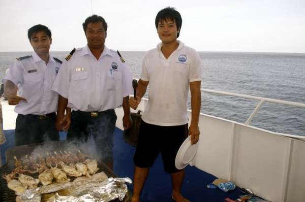 Команда из 8 человек будет обеспечивать лучший сервис, начиная с утреннего кофе в салоне и заканчивая помощью на дайв-платформе, когда Вам подсобят взобраться на борт да еще и укутают теплым полотенцем после ночного дайва!