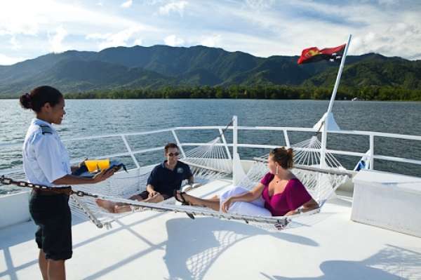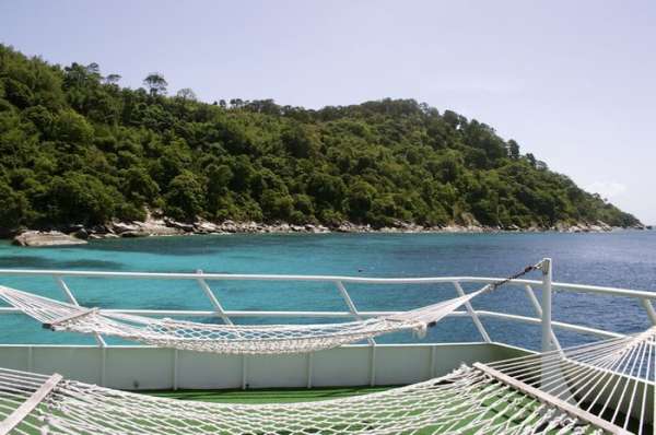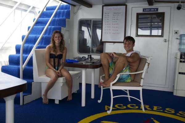 После дайвинга большинство гостей направляется на сан-дек, ведь здесь можно хорошо расслабиться (загорая или же наоборот, отдыхая в тенечке), угостившись холодным напитком и вкусной закуской.