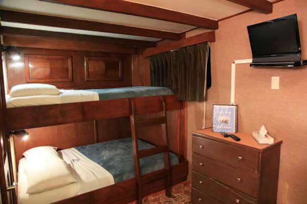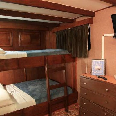 Каюта Deluxe – 7 кают с широкими двухъярусными кроватями, душем и туалетом, кондиционером с независимым управлением.