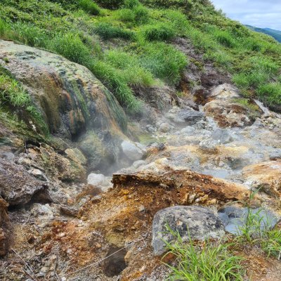 Термальный источник у подножия вулкана Баранского, купание в горячих источниках.